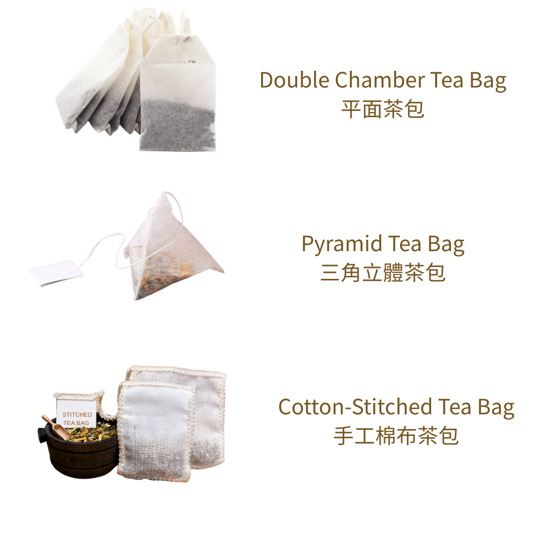 平面茶包( Single/Double Chamber), 三角立體茶包(Pyramid) , 手工棉布茶包(Hand-Stitched Cotton),你會選擇那一個?